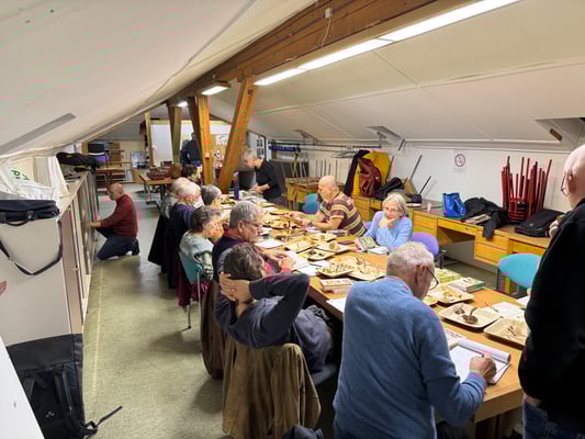 Für die Pilzbestimmung bringen die Teilnehmer ihre Pilzfunde mit und der leitende Pilzkontrolleur trifft daraus die Auswahl der Pilze, welche "auf den Tisch“ kommt.
